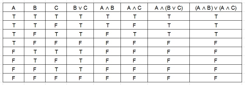 Skipping ahead… Two statements will be shown below without proof. We want one placed close to the other so you can easily compare them. After that, a Truth Table will be provided for each equation.