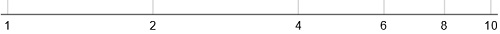 Another thing to notice: compare 2 to 6 and then compare 6 to 10 and notice that the “mid-numbers”, 4 and 8, are not at the center of the interval. It’s easier to see for the 4.