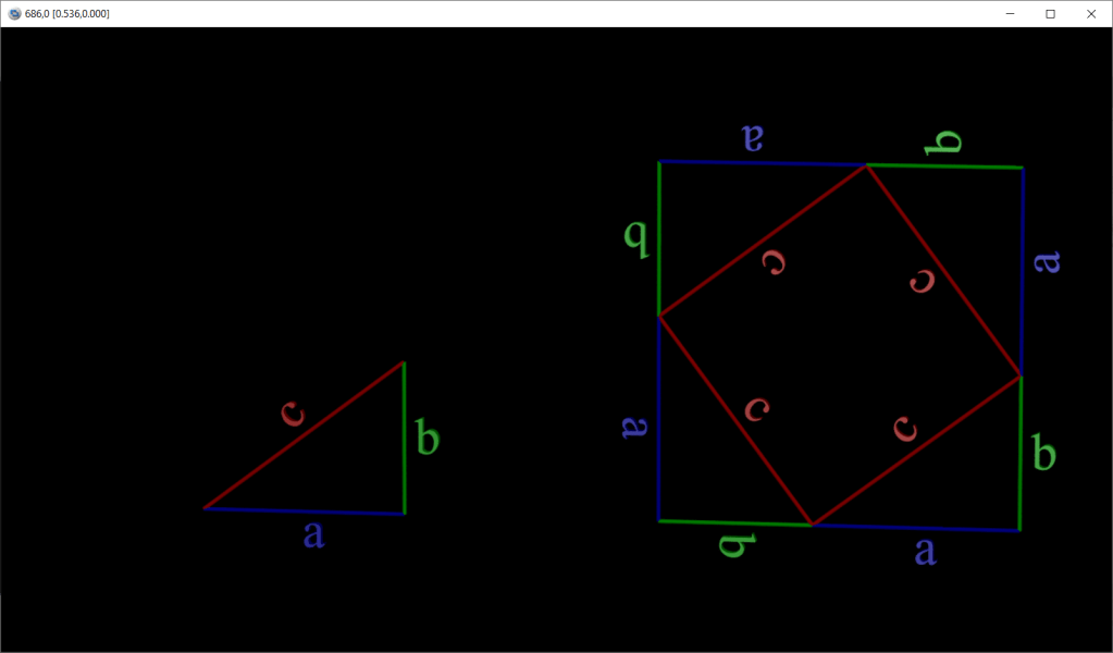 This equation can be proven by constructing four right triangles that are equal and placing them together in a way that creates a square with sides of length c inside another square. This is shown below: